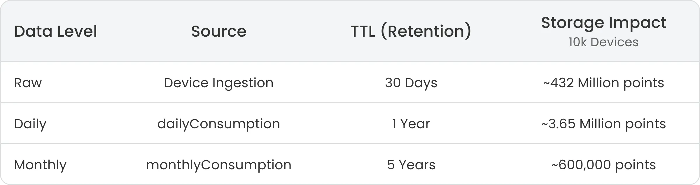 This ensures that detailed consumption measurements are automatically removed after it has served its short-term purpose, preventing unnecessary growth of storage.