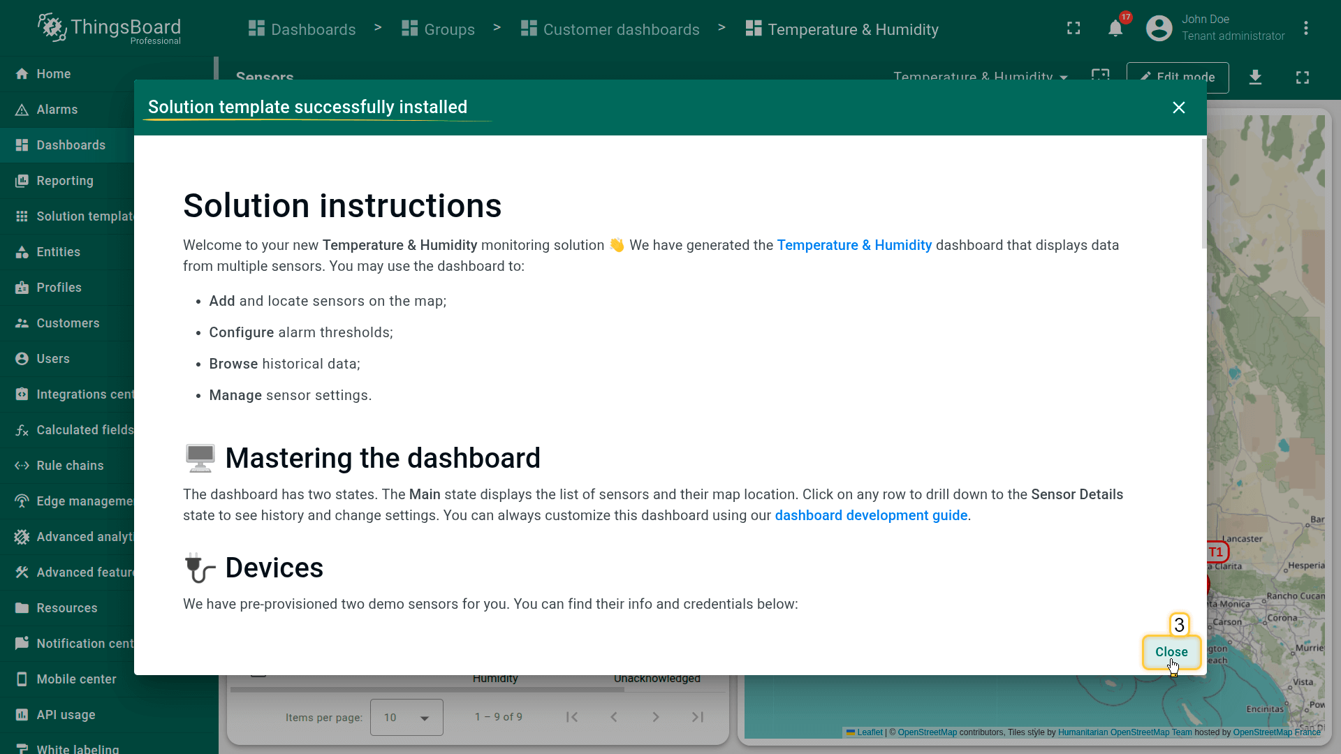 This template allows you to evaluate and demonstrate the solution from an End User perspective immediately, without configuring rule chains, dashboards, or device profiles manually.