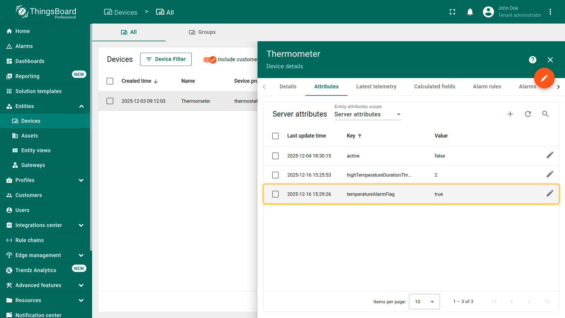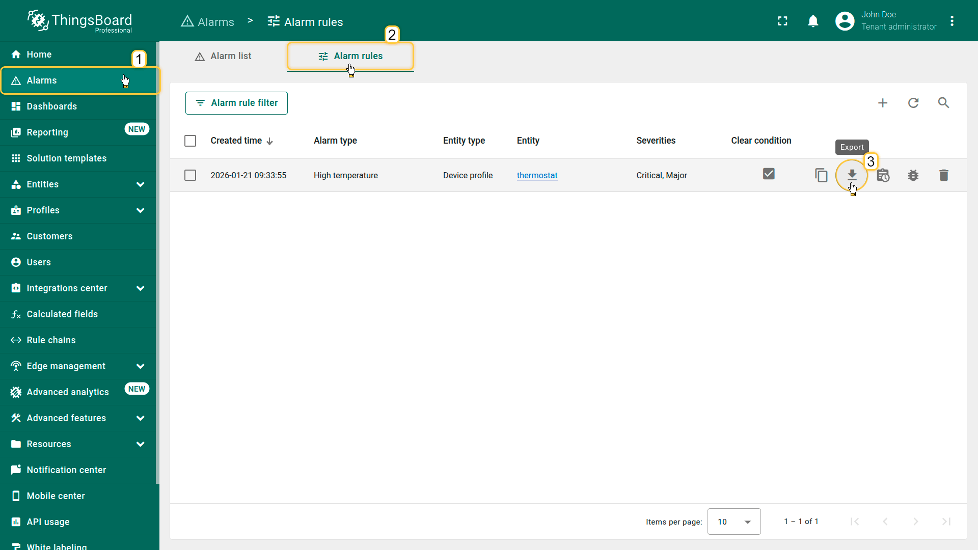 Recommendation: Create alarm rules in Device profiles or Asset profiles to avoid duplicating configurations across multiple entities.