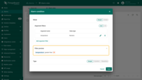 - Operation — the comparison operator, such as: equal, not equal, missing for, greater than, less than, greater or equal, less or equal, starts with, ends with, contains, not contains, in, not inю