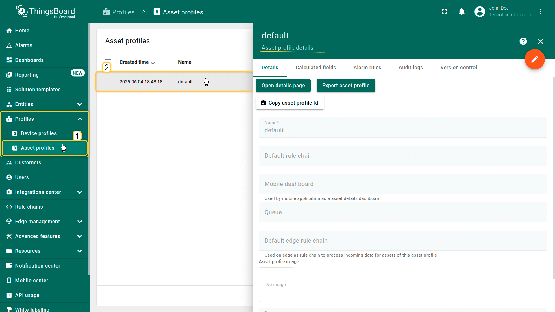Since ThingsBoard 3.4.2, the Tenant administrator is able to configure common settings for multiple assets using Asset Profiles. Each Asset has one and only profile at a single point in time. Experienced ThingsBoard users can notice that the asset type has been deprecated in favor of the Asset Profile. The update script will automatically create Asset Profiles based on unique Asset Types and assign them to the appropriate assets.