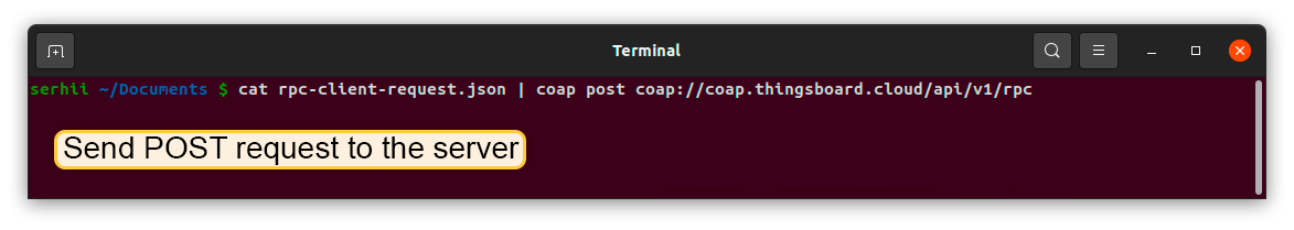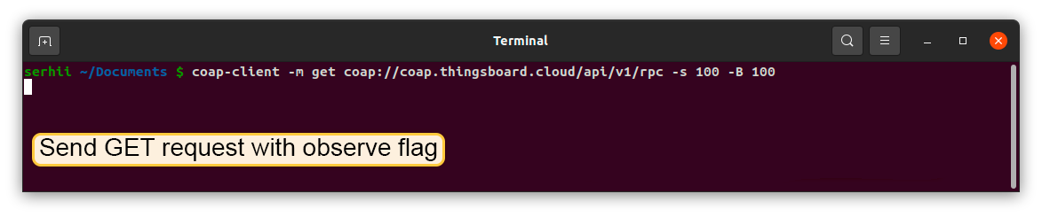 Send GET request with observe flag to the following URL: Once subscribed, a client may receive RPC requests. An example of RPC request body is shown below: