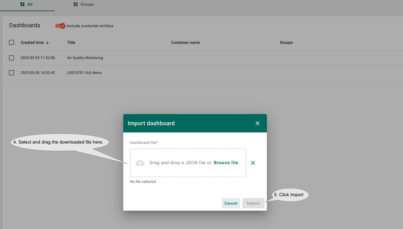 If you want to experience the dashboard quickly, you can download this file and import it to your ThingsBoard to get a glimpse of the dashboard experience.