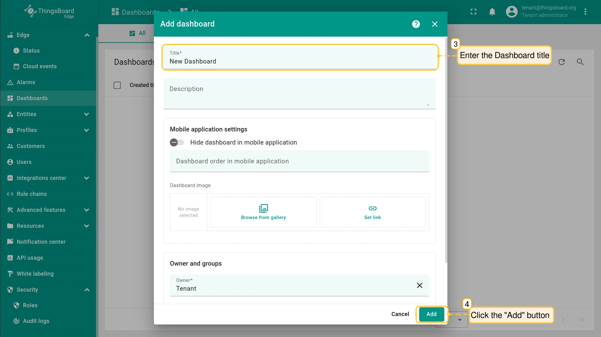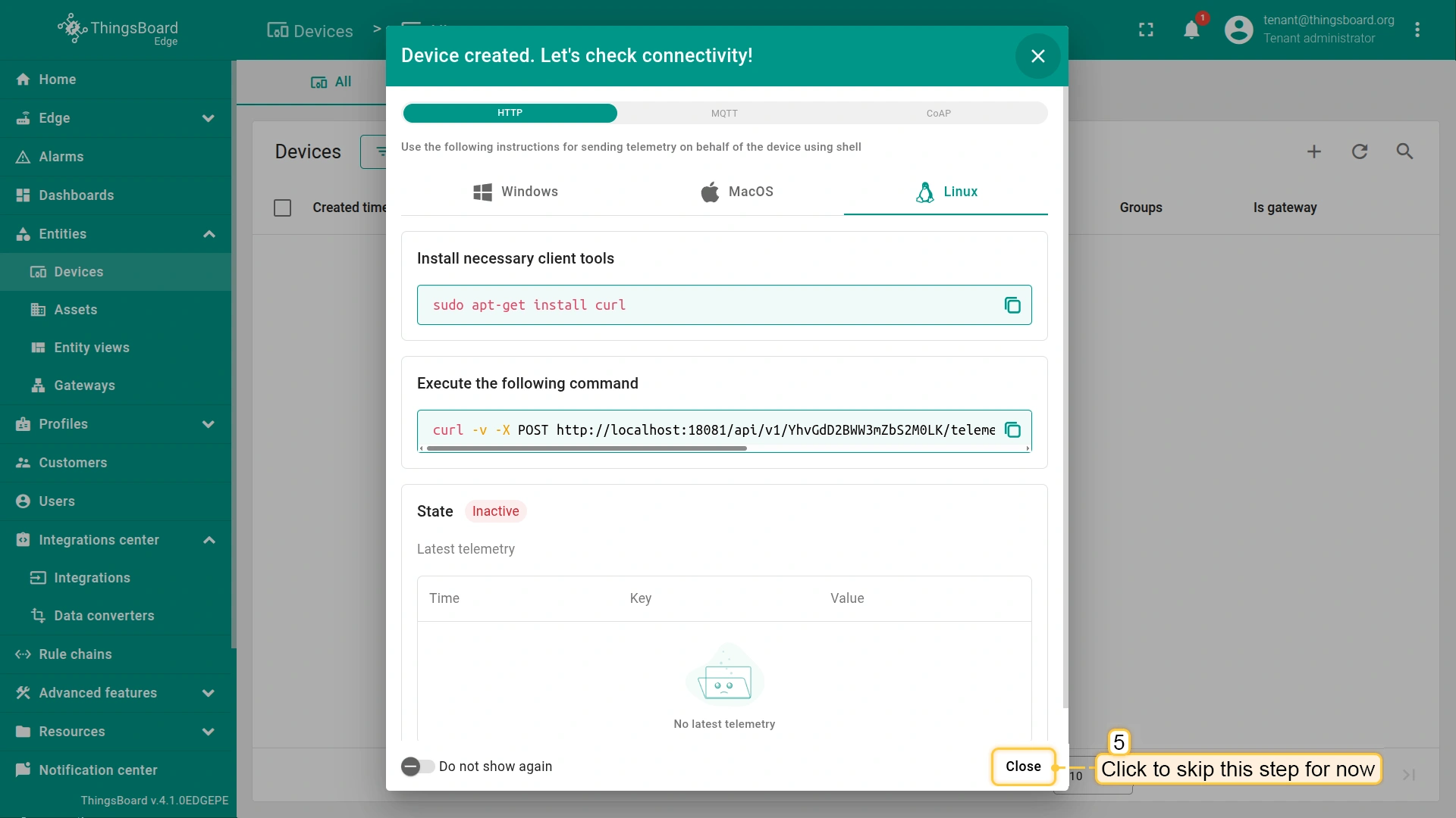 To go further, explore the ThingsBoard Edge documentation to learn more about key features, such as creating dashboards to visualize your telemetry, or setting up alarm rules to monitor device behavior in real time.
