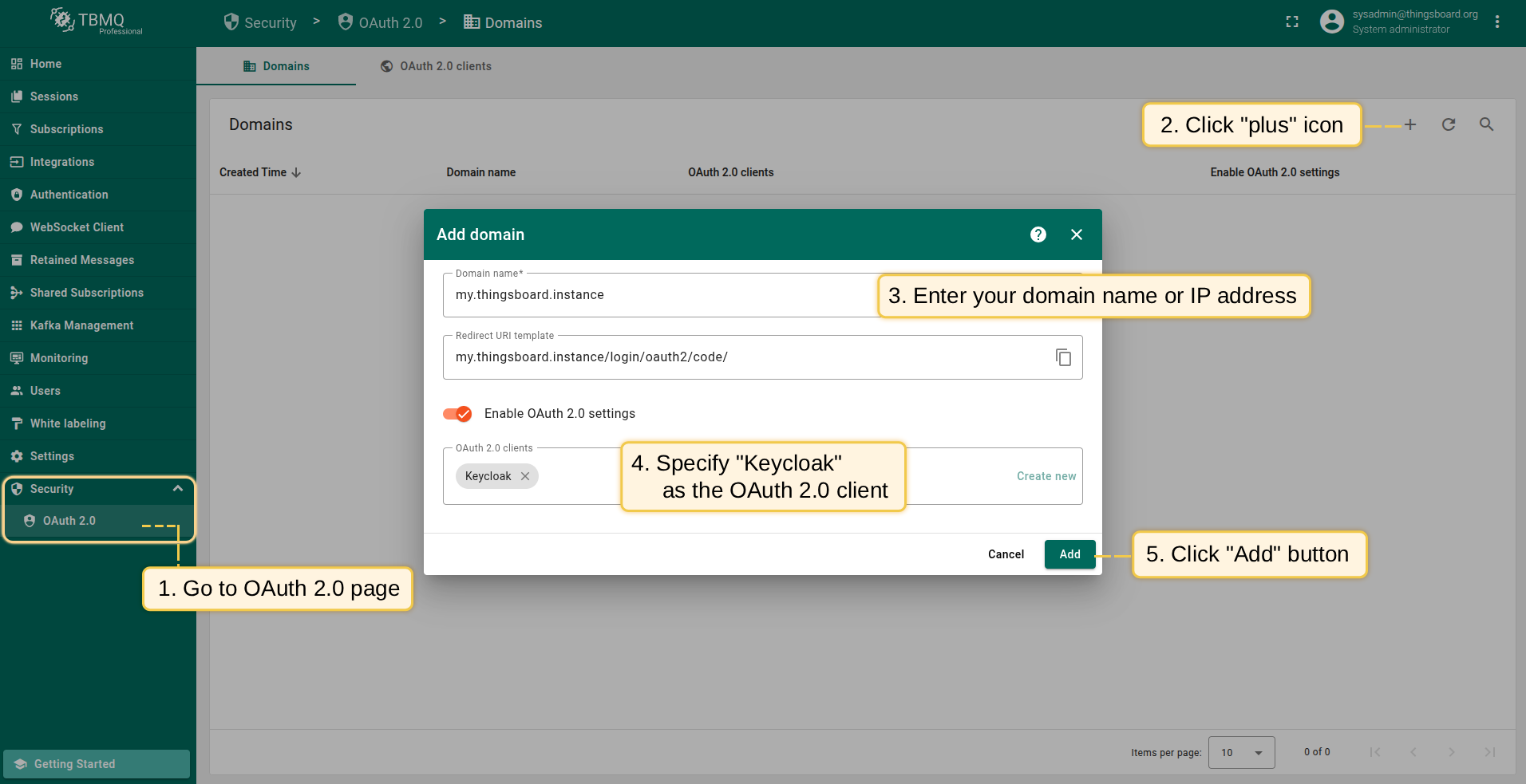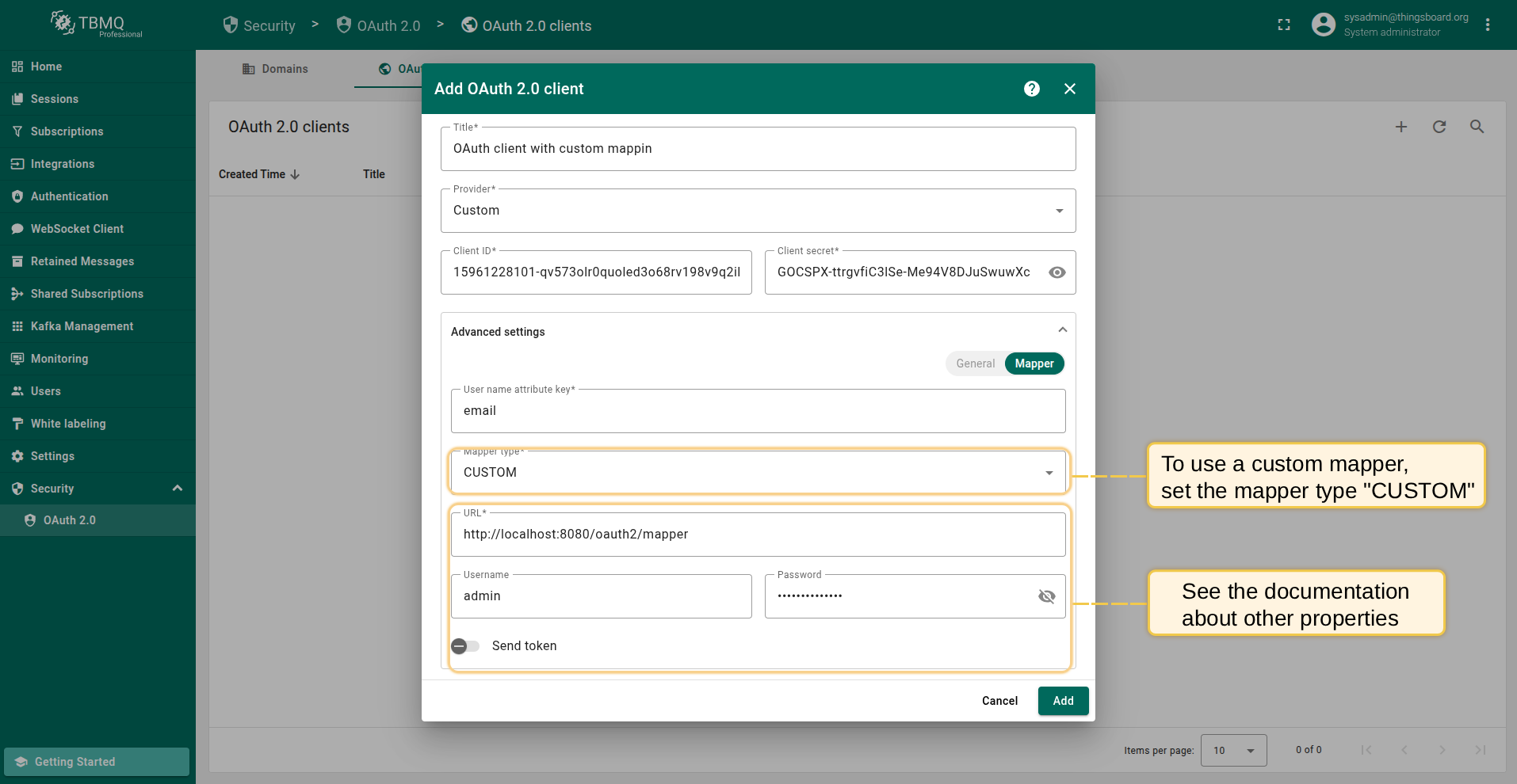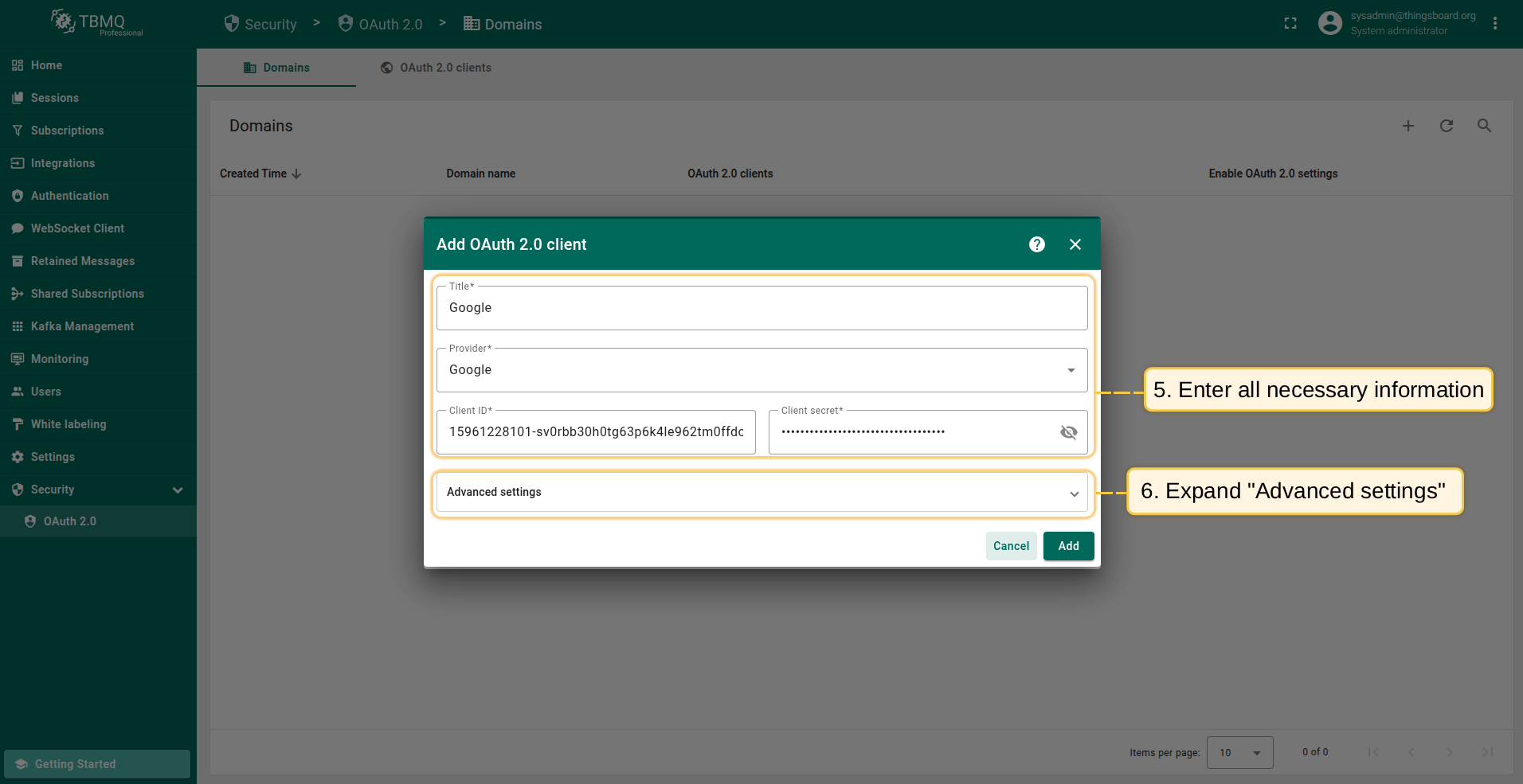 Follow these steps to add a new OAuth 2.0 client to TBMQ: