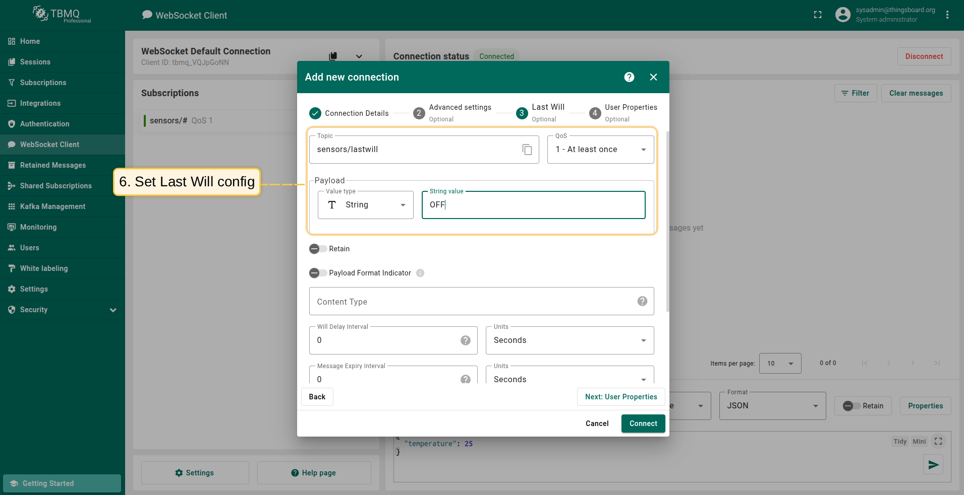 Last Will guide with TBMQ WebSocket Client