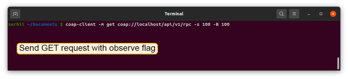 In order to subscribe to RPC commands from the server, send GET request with observe flag.