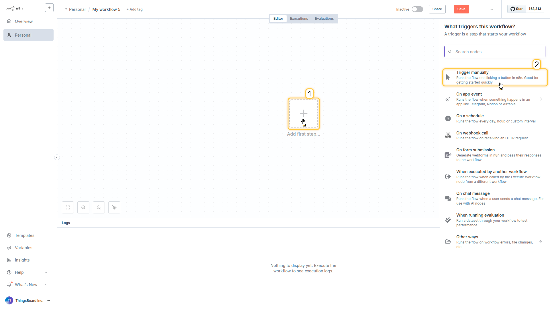 - Although this example uses Trigger manually, the same workflow can be triggered by: