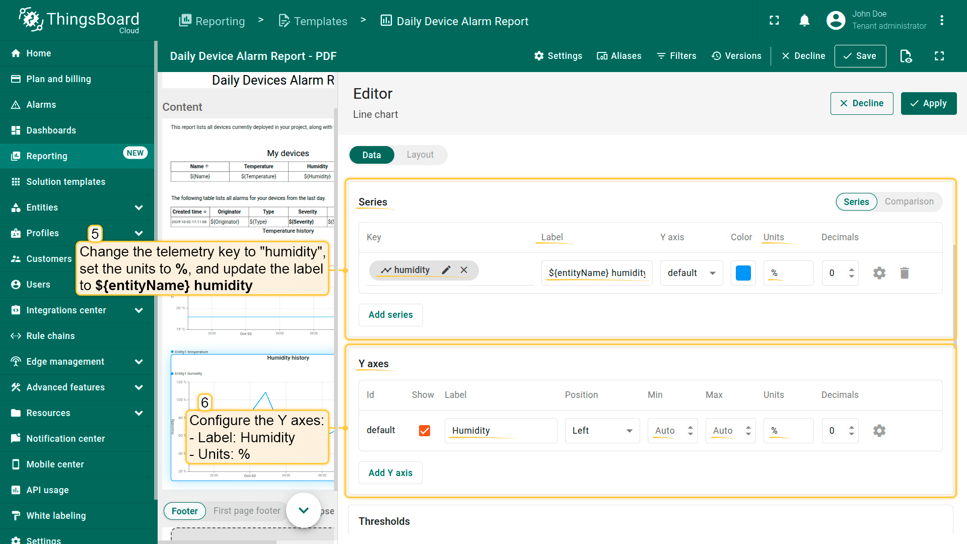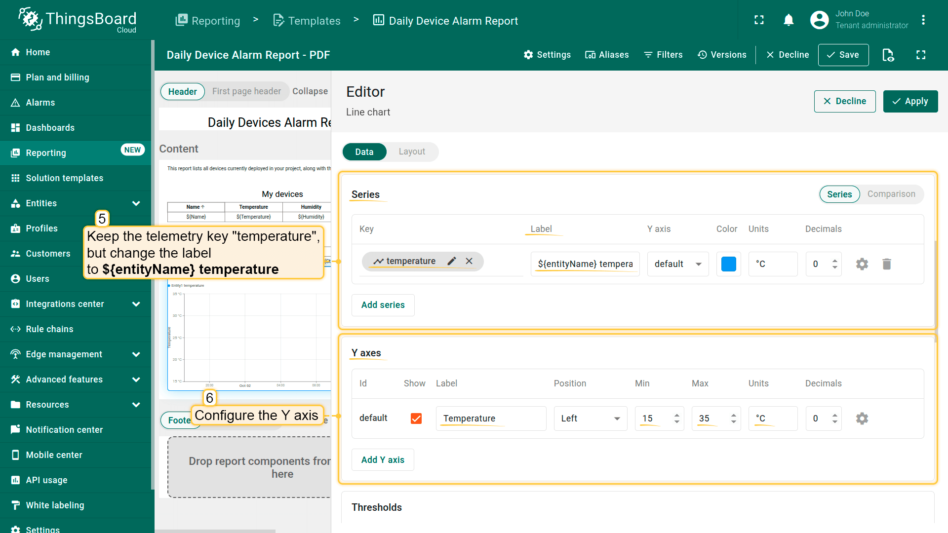 In this guide, we'll walk through the basic steps of using Reporting in ThingsBoard, and create a report template with automated delivery configured for two different customers.