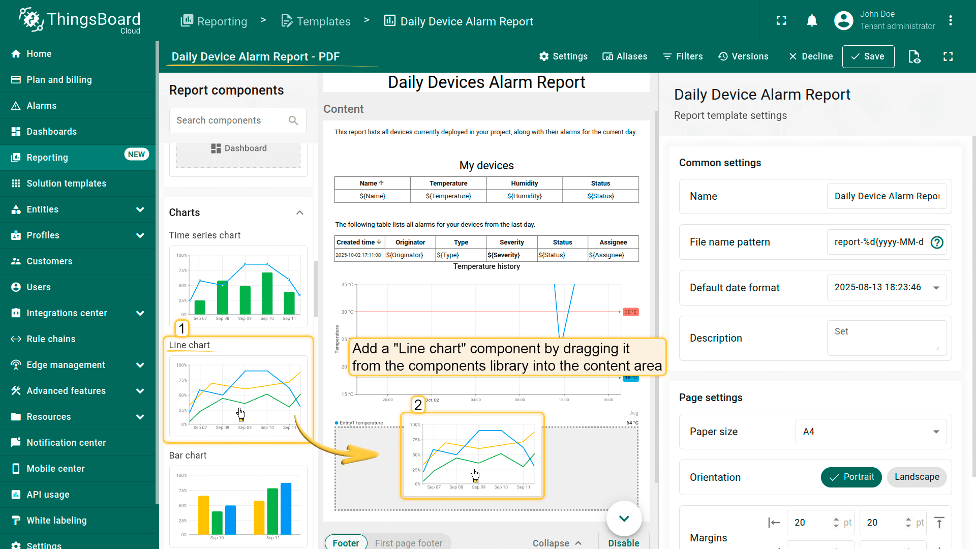 In ThingsBoard, Reporting is a powerful and flexible tool for collecting, organizing, and automatically delivering data in the form of reports.
