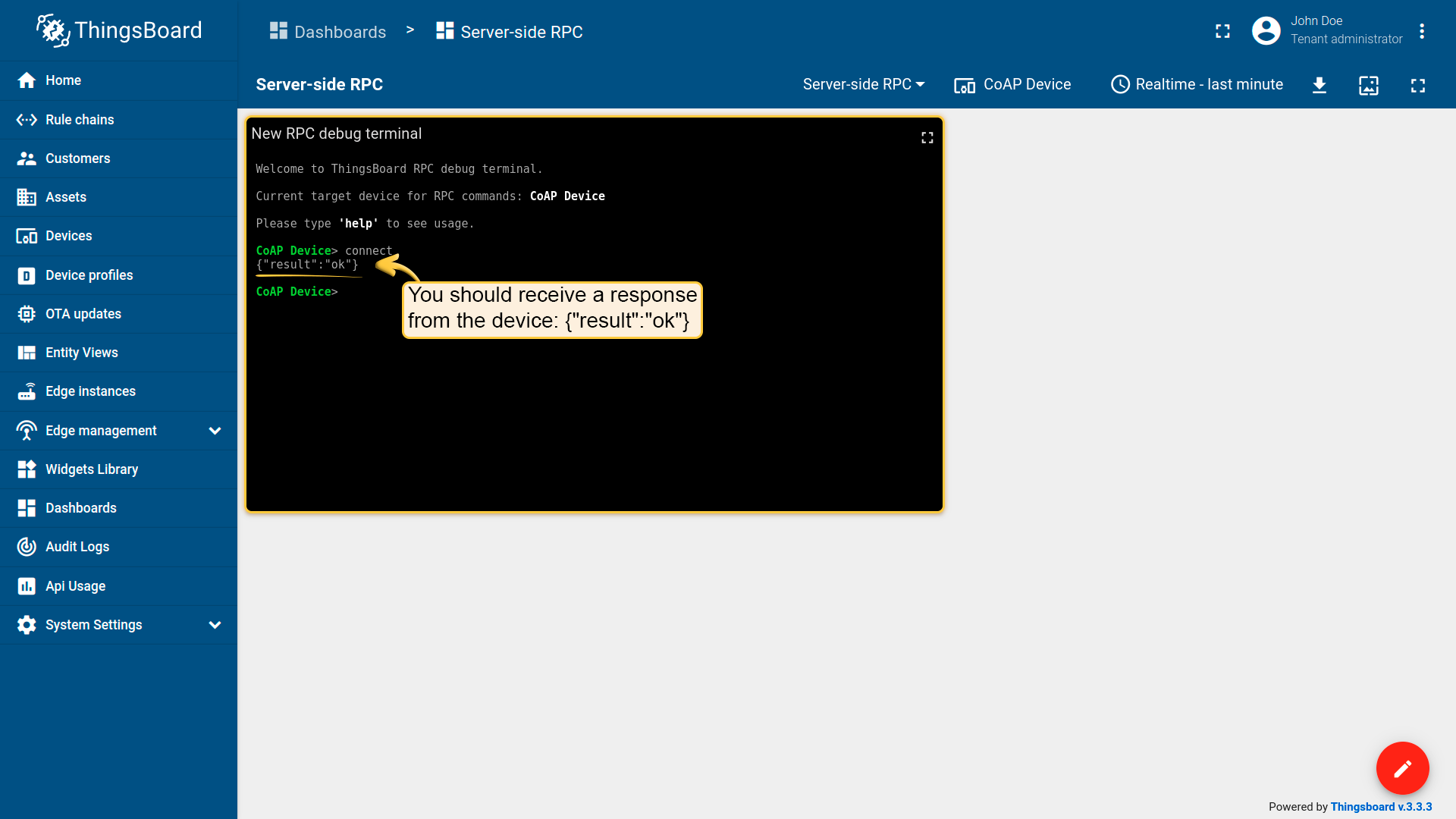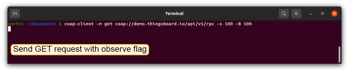 ThingsBoard server nodes act as a CoAP Server that supports both regular and observe requests.