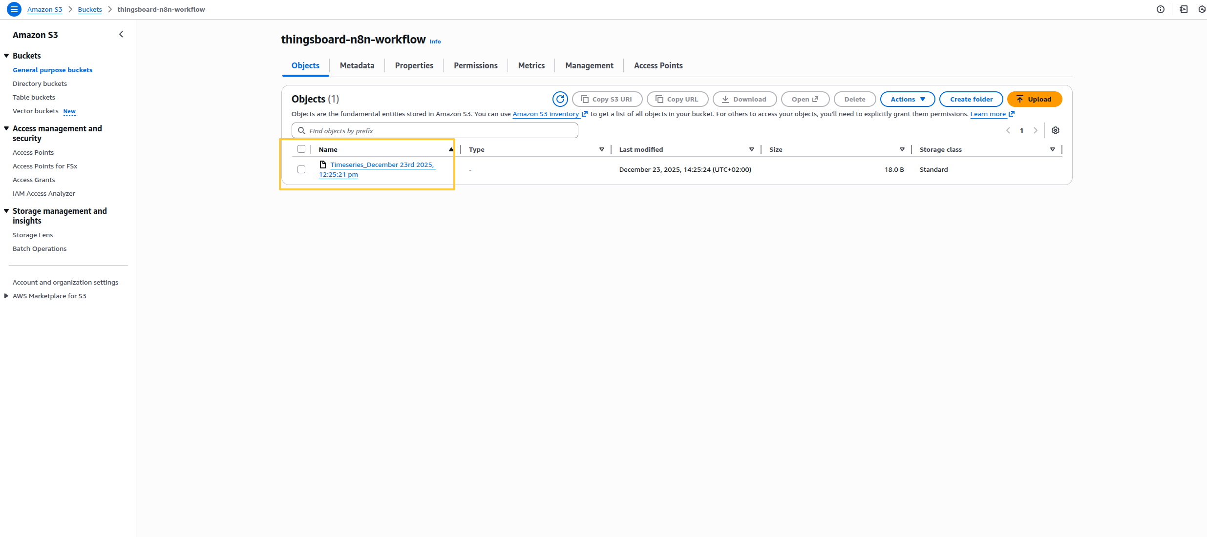 Scenario: Every day at midnight, automatically export the last 24 hours of device telemetry to AWS S3 as JSON files for data warehousing, analytics, or compliance archival.