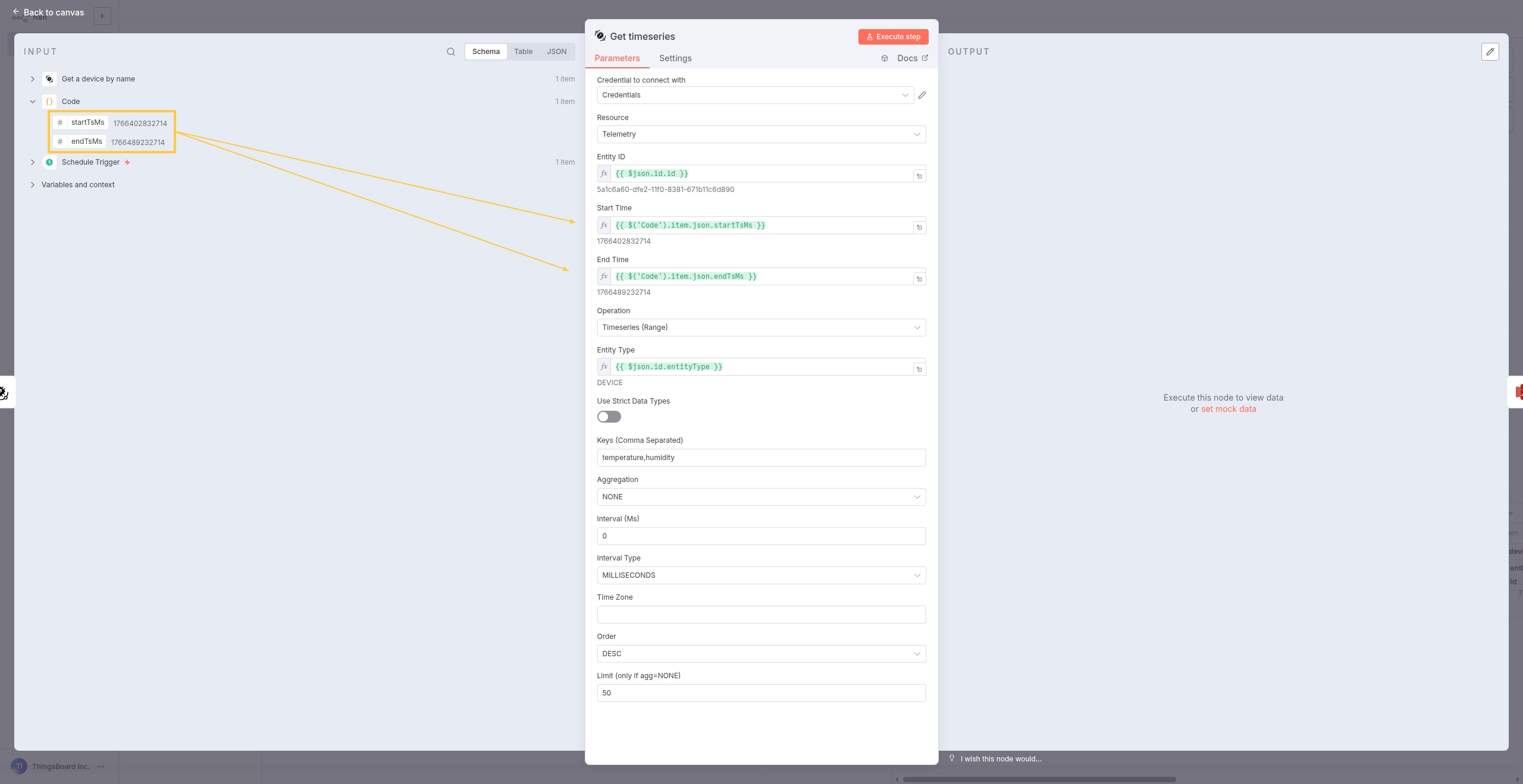 - Get timeseries keys -> timeseriesKeys to Keys (Comma Separated)