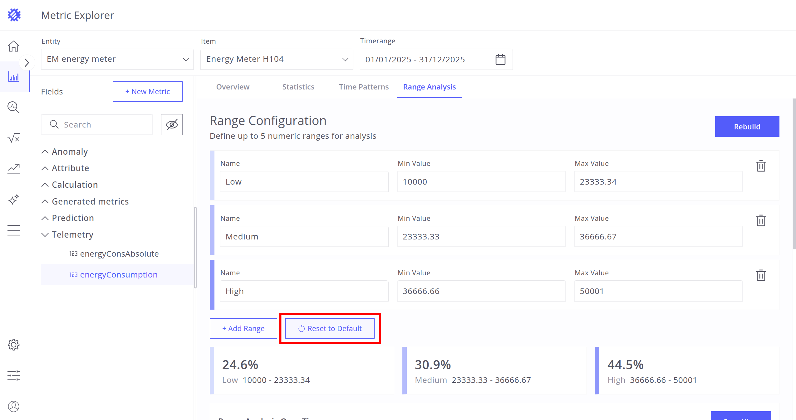 - Range Analysis - Distribution of telemetry values over time and range intervals.