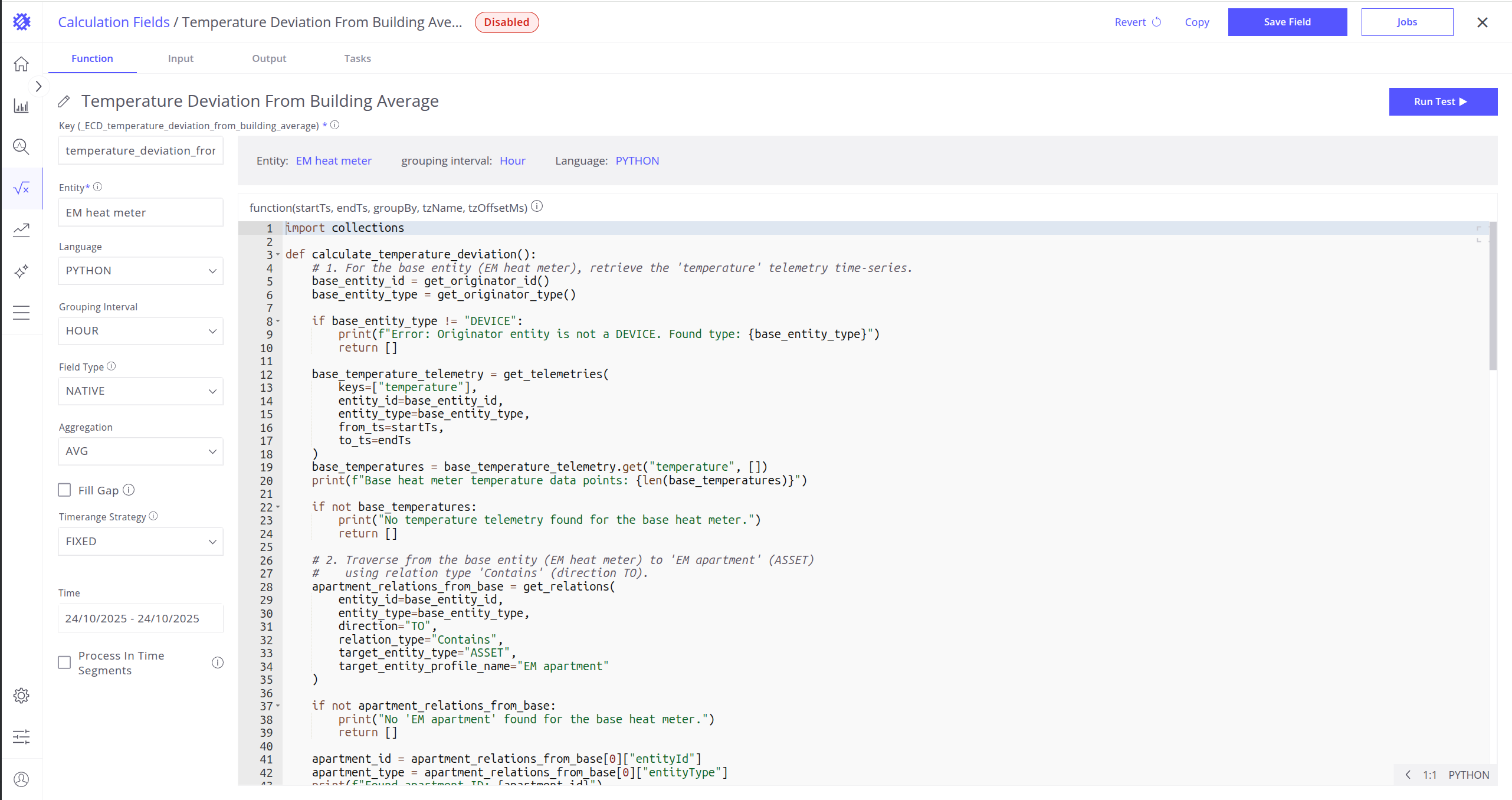 Once the calculation field is created and all parameters are set up, you can run a Reprocess Job to save historical data to ThingsBoard.