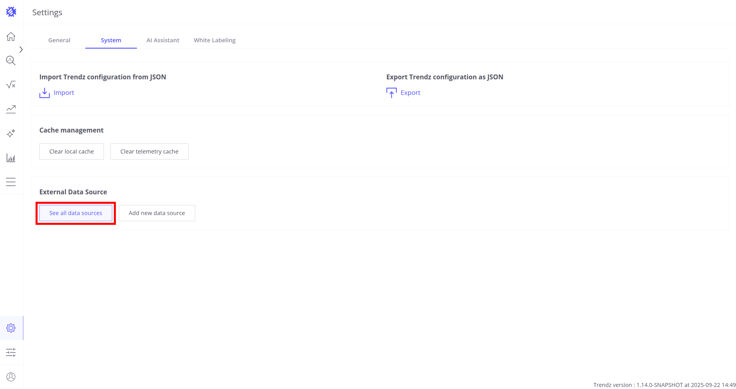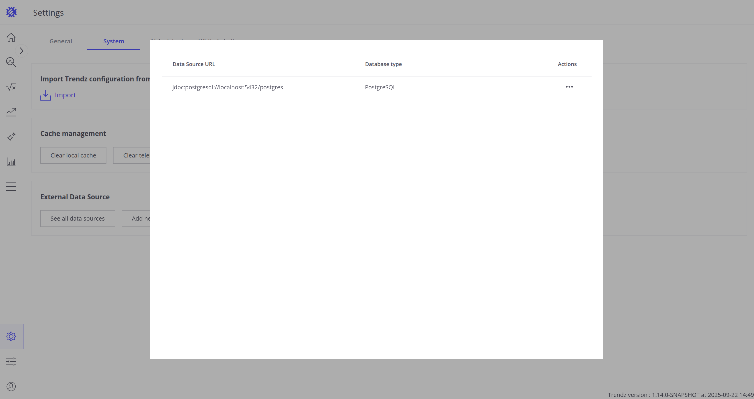 Important to highlight: Trendz can use data from an external datasource only together with related data from ThingsBoard. It could be just item names or other data.