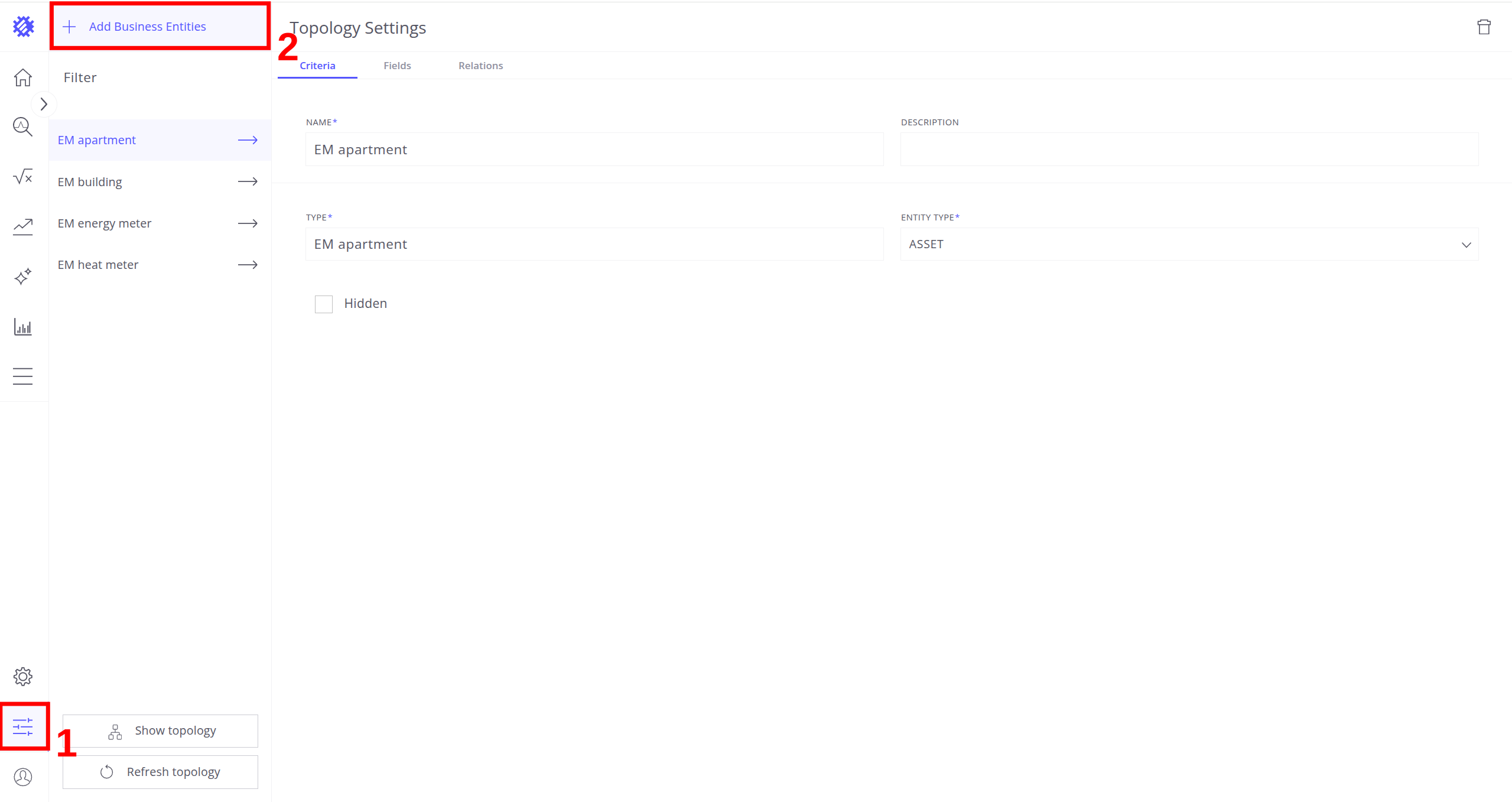 - Select the business entity you want to connect the external business entity with, the key column from Step 2 should contain the ID of the device/asset associated with the chosen business entity (EM building).