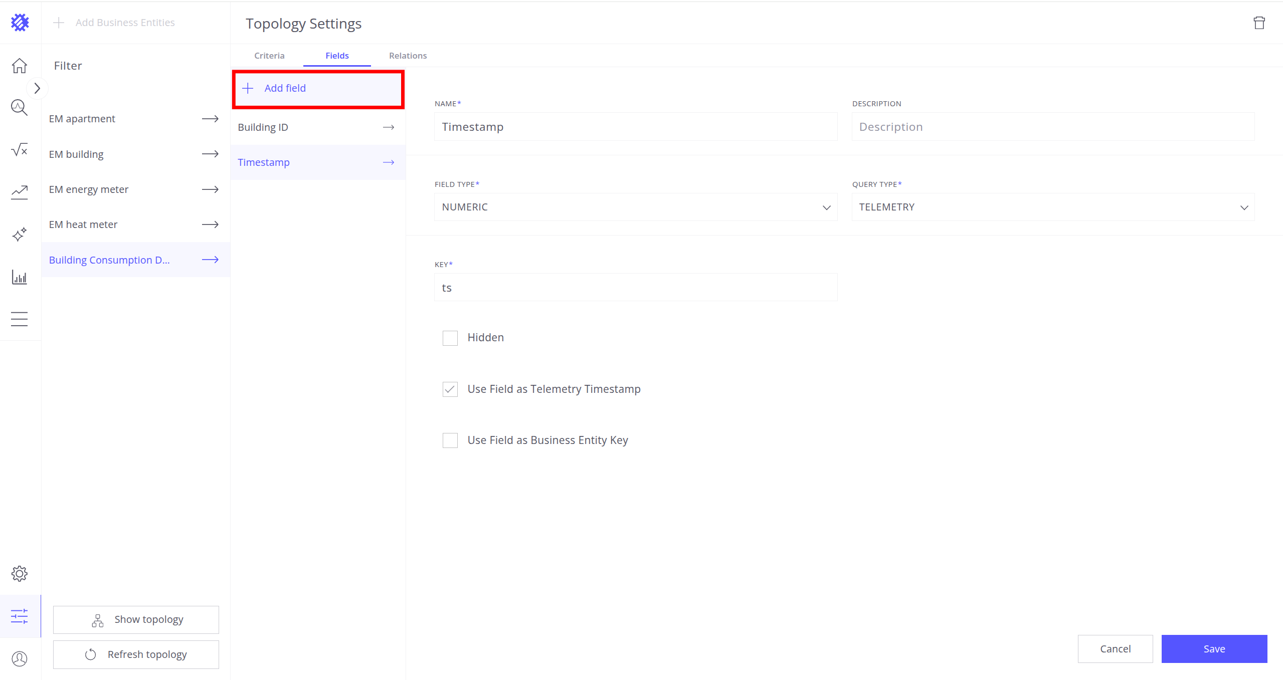 - In the Key field, enter the column name of the data you want to use from the specified table (heat_consumption / energy_consumption). Note: column names are case-sensitive.