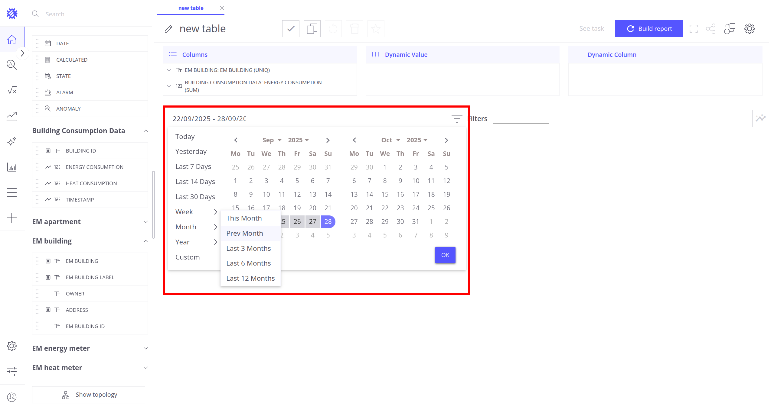 - Drag and drop any field from the external business entity into the column section (energy_consumption).