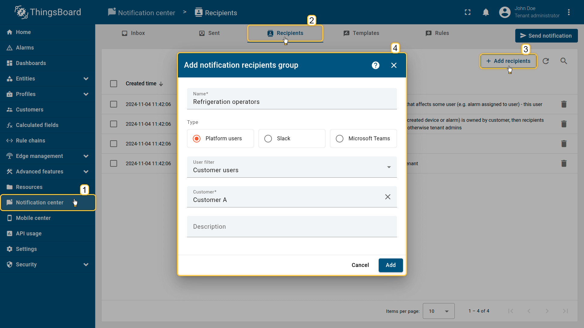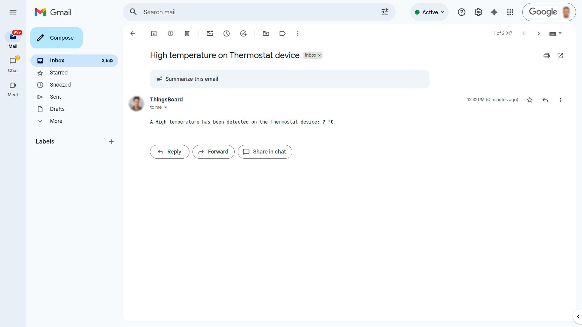 This guide explains how to configure ThingsBoard to automatically send email notifications to users when an alarm is created.