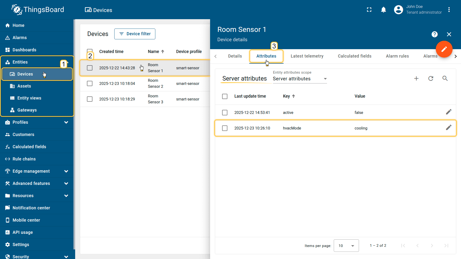 Important note about the CSV: the column type for the hvacMode keys must be set to “Server attributes”.